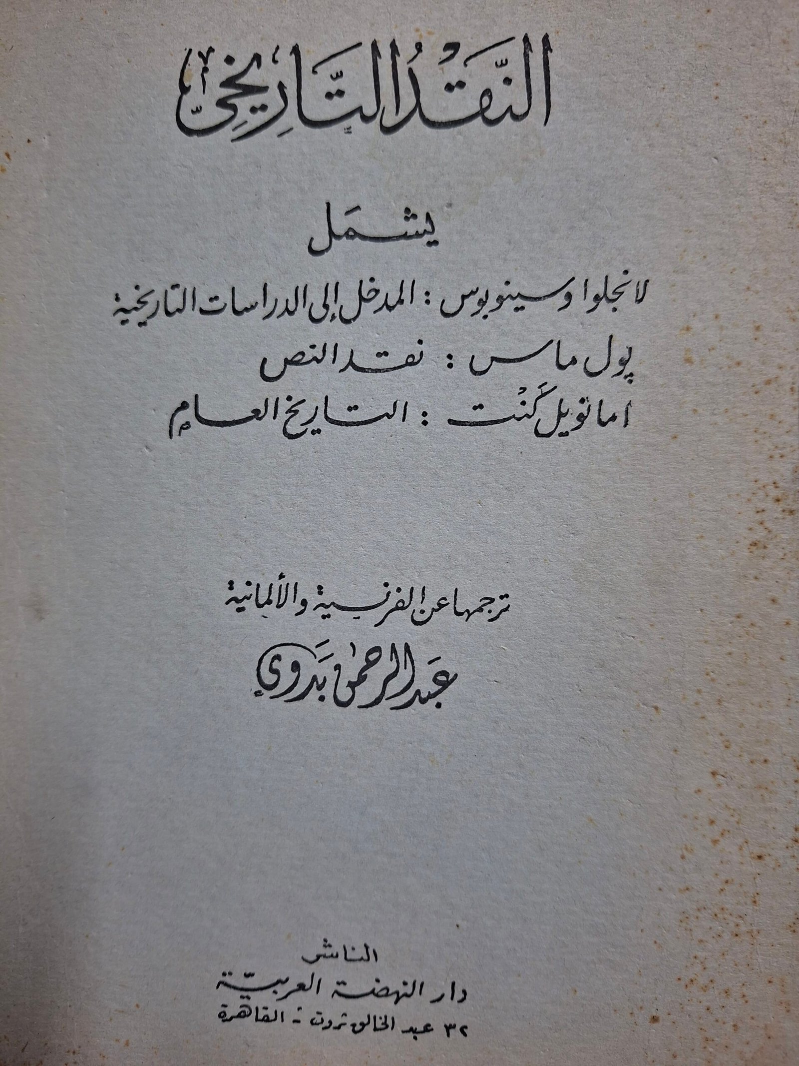 النقد التاريخي ترجمها عن الفرنسية والالمانية#عبدالرحمن بدوي#