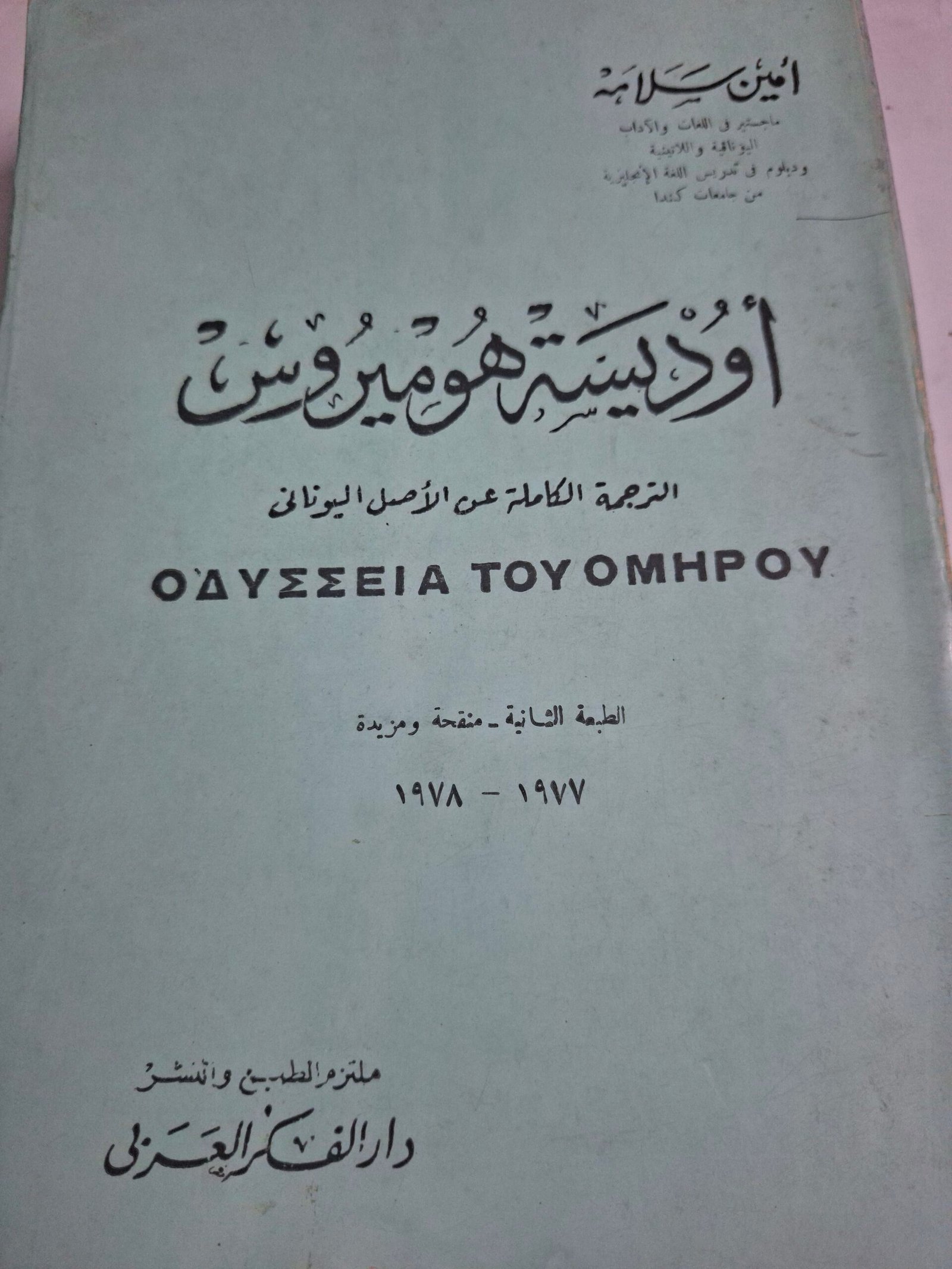 اوديسة هوميروس الترجمة الكاملة عن الاصل اليوناني تاليف”امين سلامة”