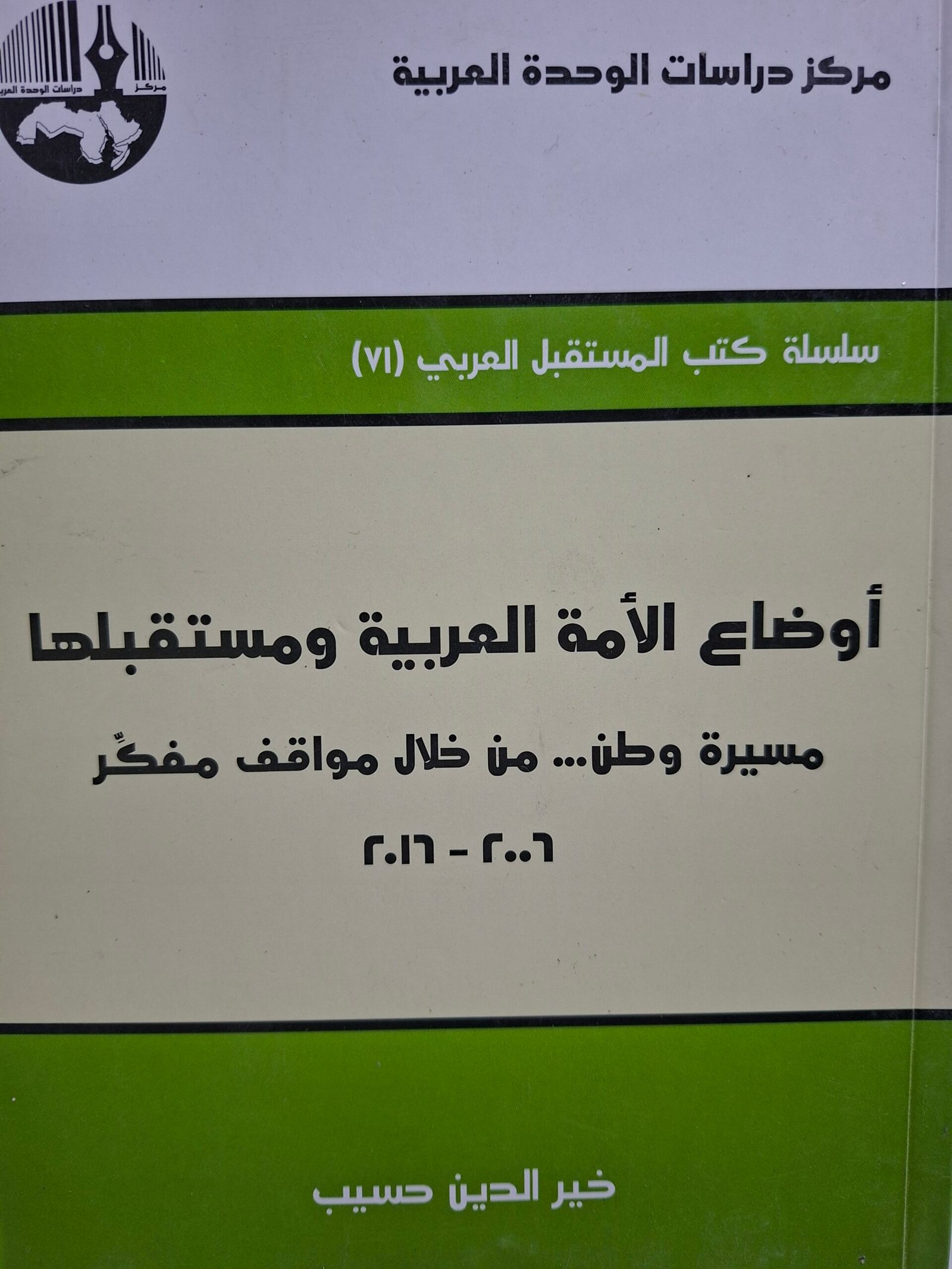 اوضاع الامة العربيةومستقبلها. مسيرة وطن.. من خلال مواقف مفكر(٢٠٠٦_٢٠١٦) تاليف”خير الدين حسيب”