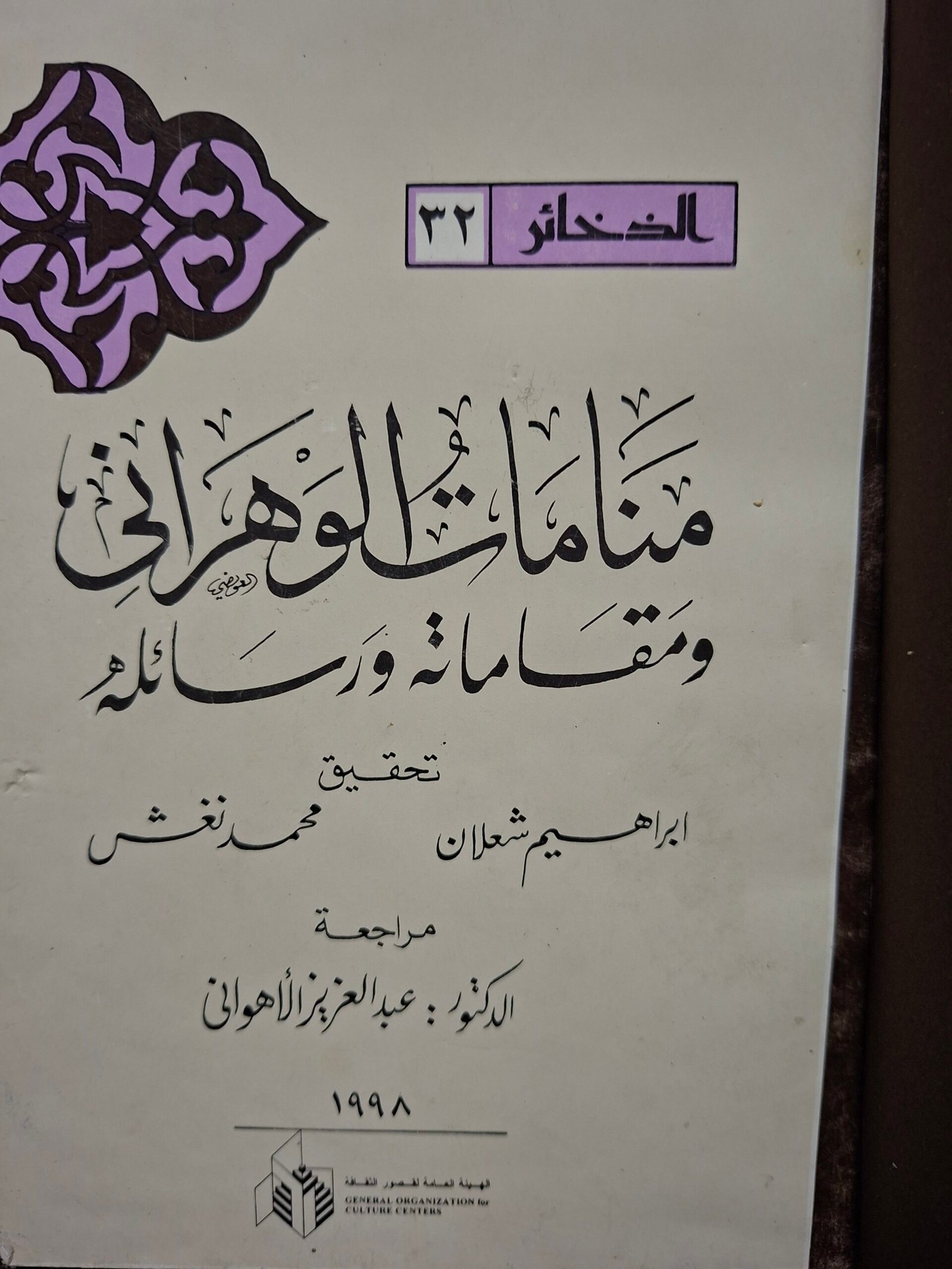 مقامات الزهراني ومقاماتة ورسائلة تحقيق: ابراهيم شعلان مجلد كعب جلد فخم