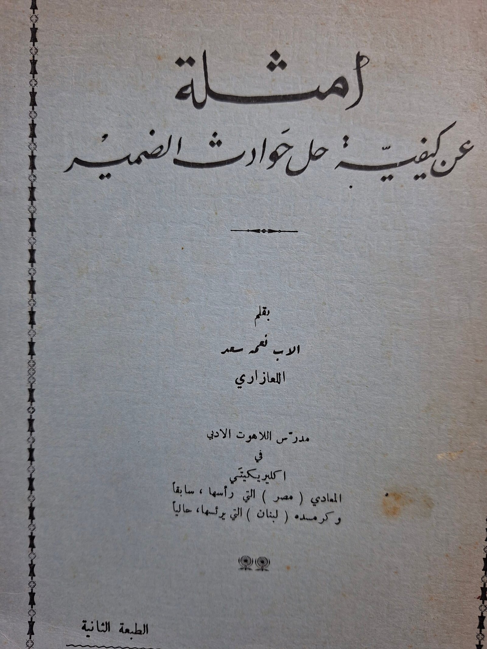 كمية أمثلة عن كيفية حل حوادث الضمير__الاب نعمة سعد اللعازاري