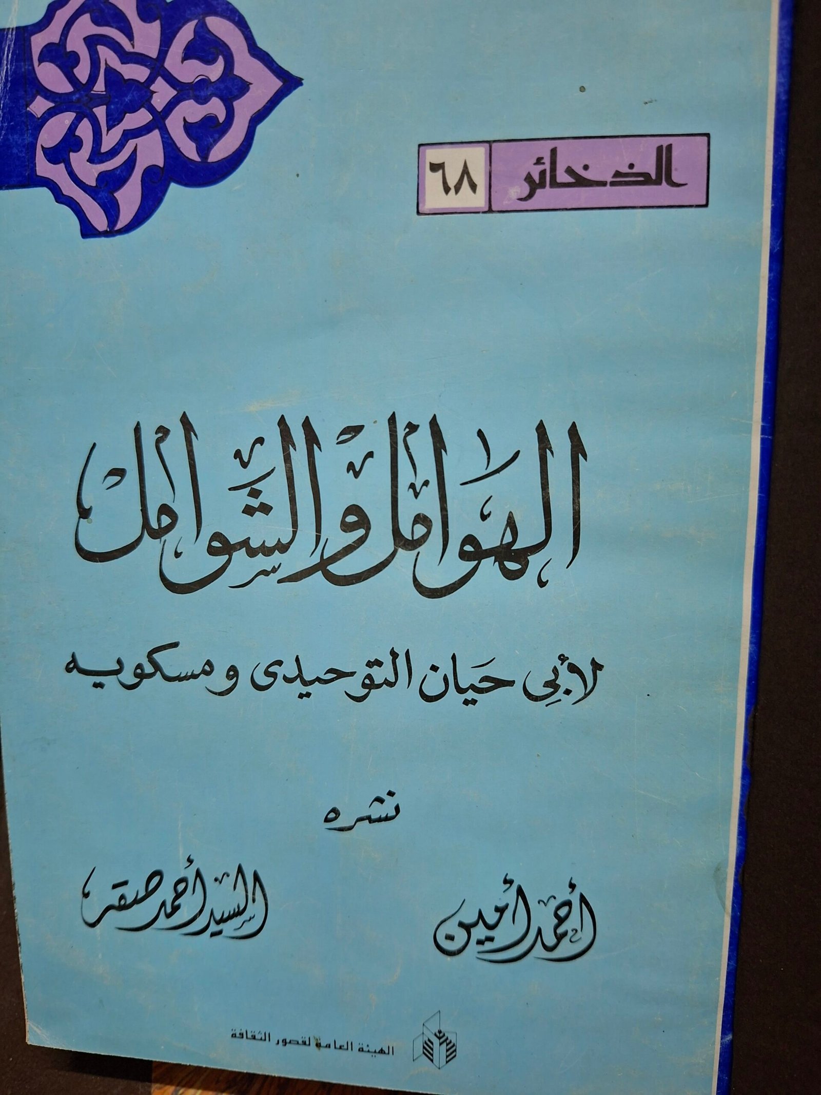 العوامل والشامل لأبي حيان التوحيدي ومسكوية نشرة:أحمد أمين مجلد كعب جلد