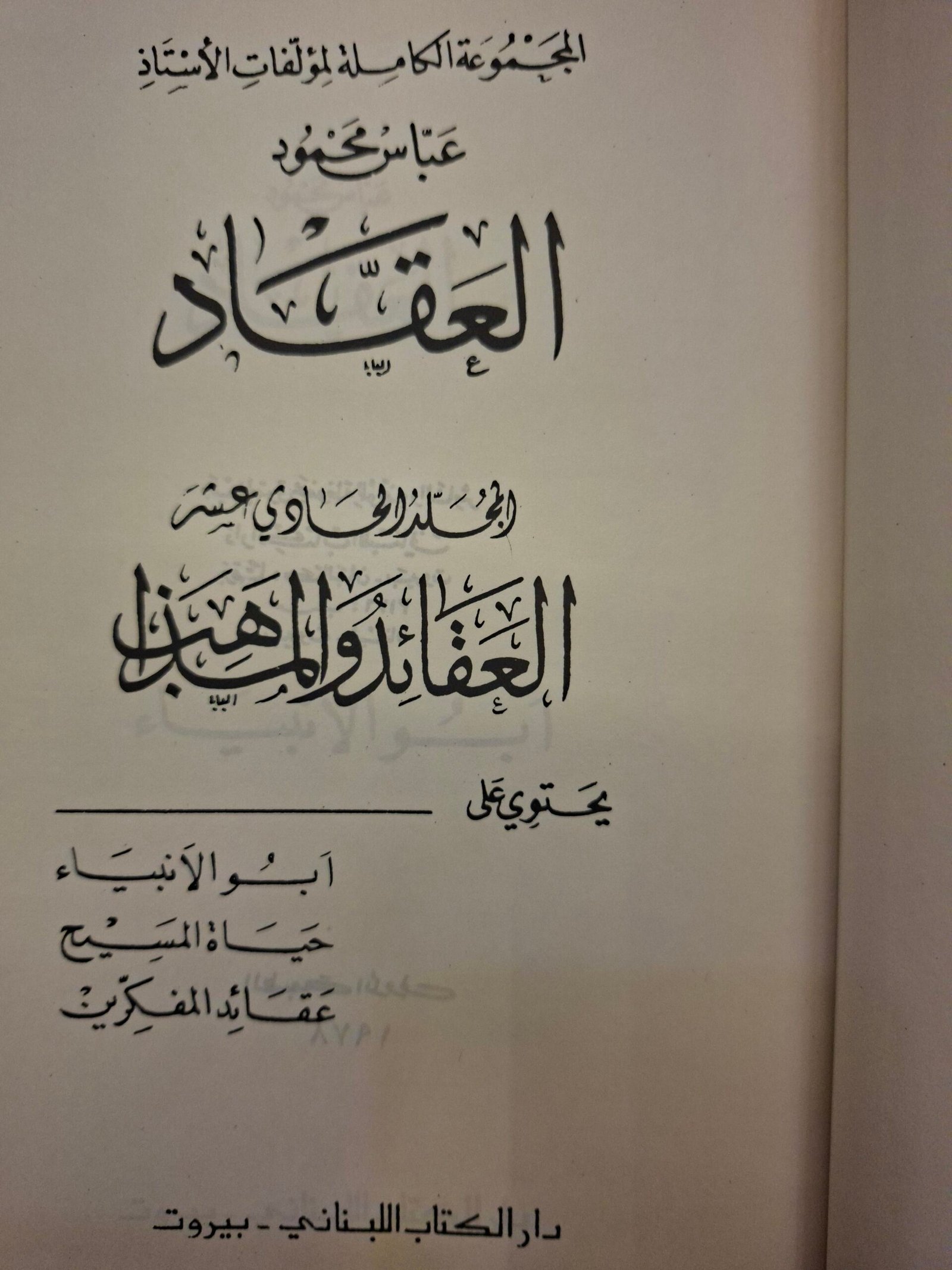 كمية المجموعة الكاملة المجلد الحادي عشر يحتوي _ابو الأنبياء _حياة المسيح _عقائد المفسرين تاليف#عباس محمود العقاد#