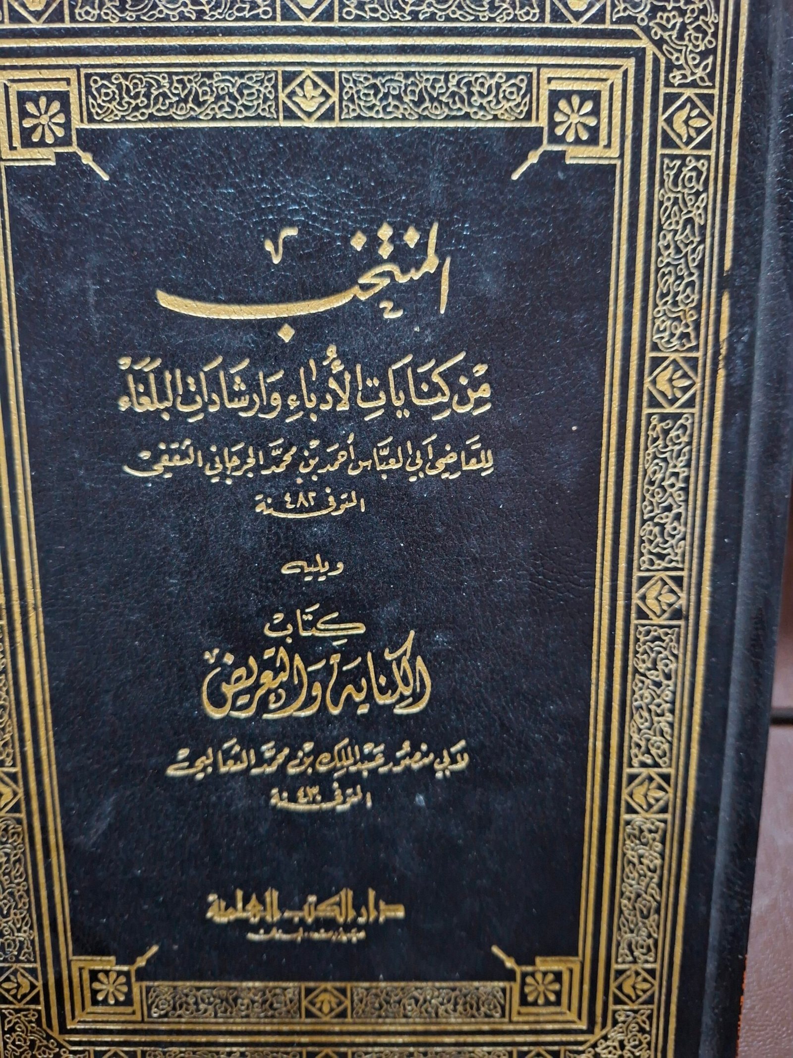 كمية المنتخب من كفايات الأدباء وإرشاد البلغاء للقاضي ابي العباسي احمد بن محمد الجرجاني الثقفي، ويلية كتاب العناية والتعريض لابي منصور عبد الملك بن محمد الثعالبي.
