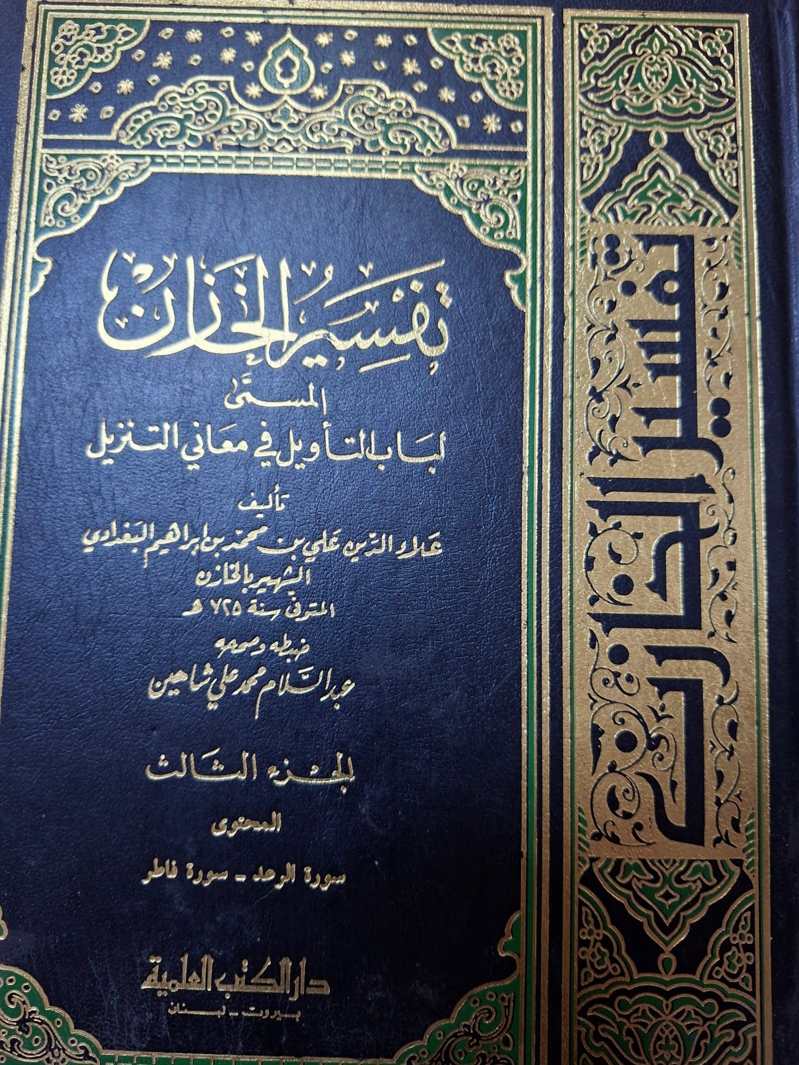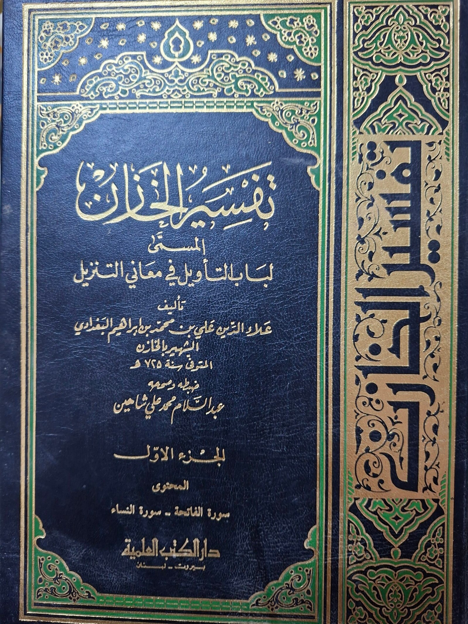 تفسير الخازن المسمي لباب التاويل في معاني التنزيل تاليف#علاء الدين علي بن محمد بن ابراهيم البغدادي الشهير الخازن# اربع مجلدات