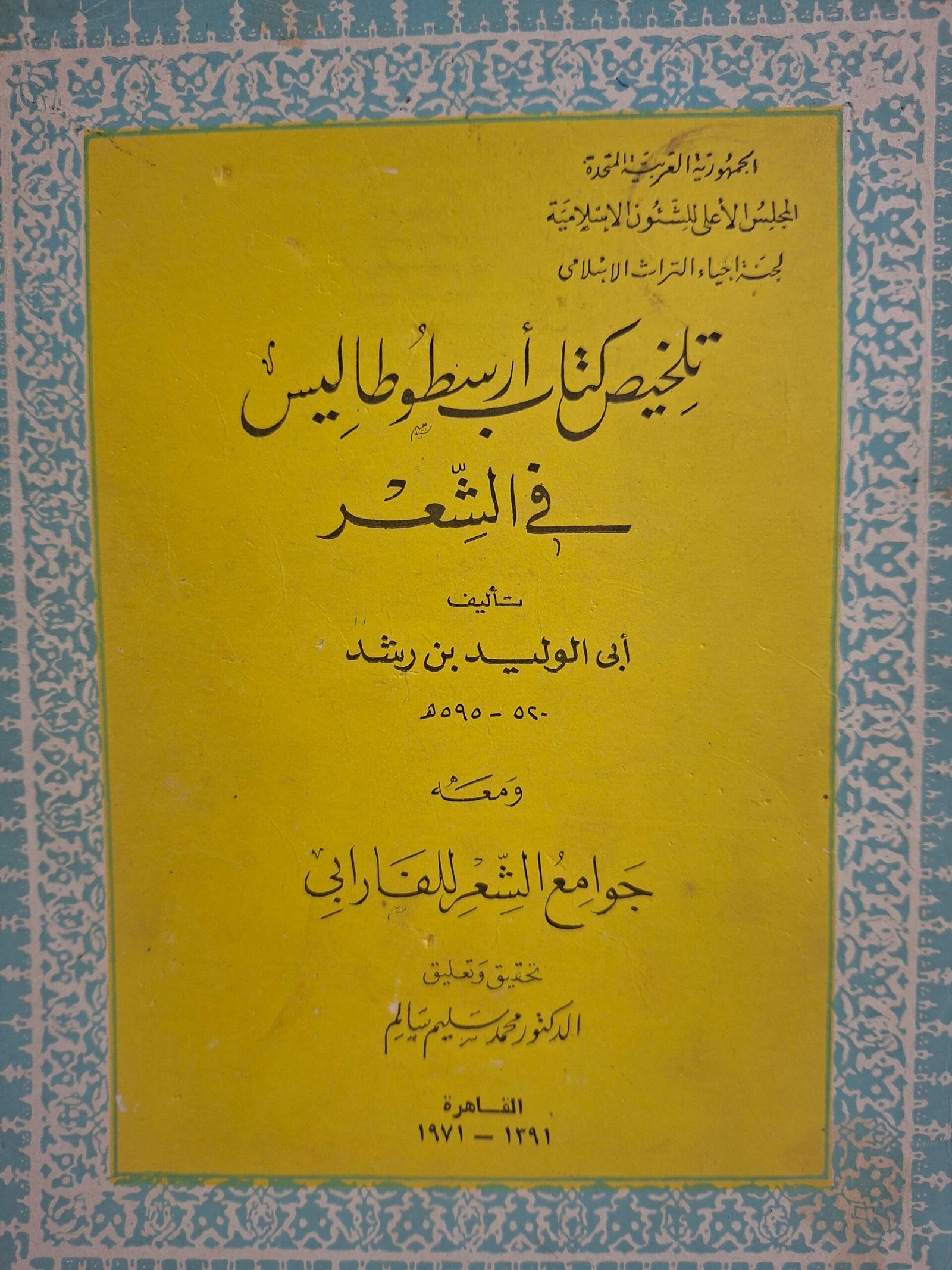 / تلخيص كتاب ارسطوطاليس في الشعر__ابي الوليد ابن رشد