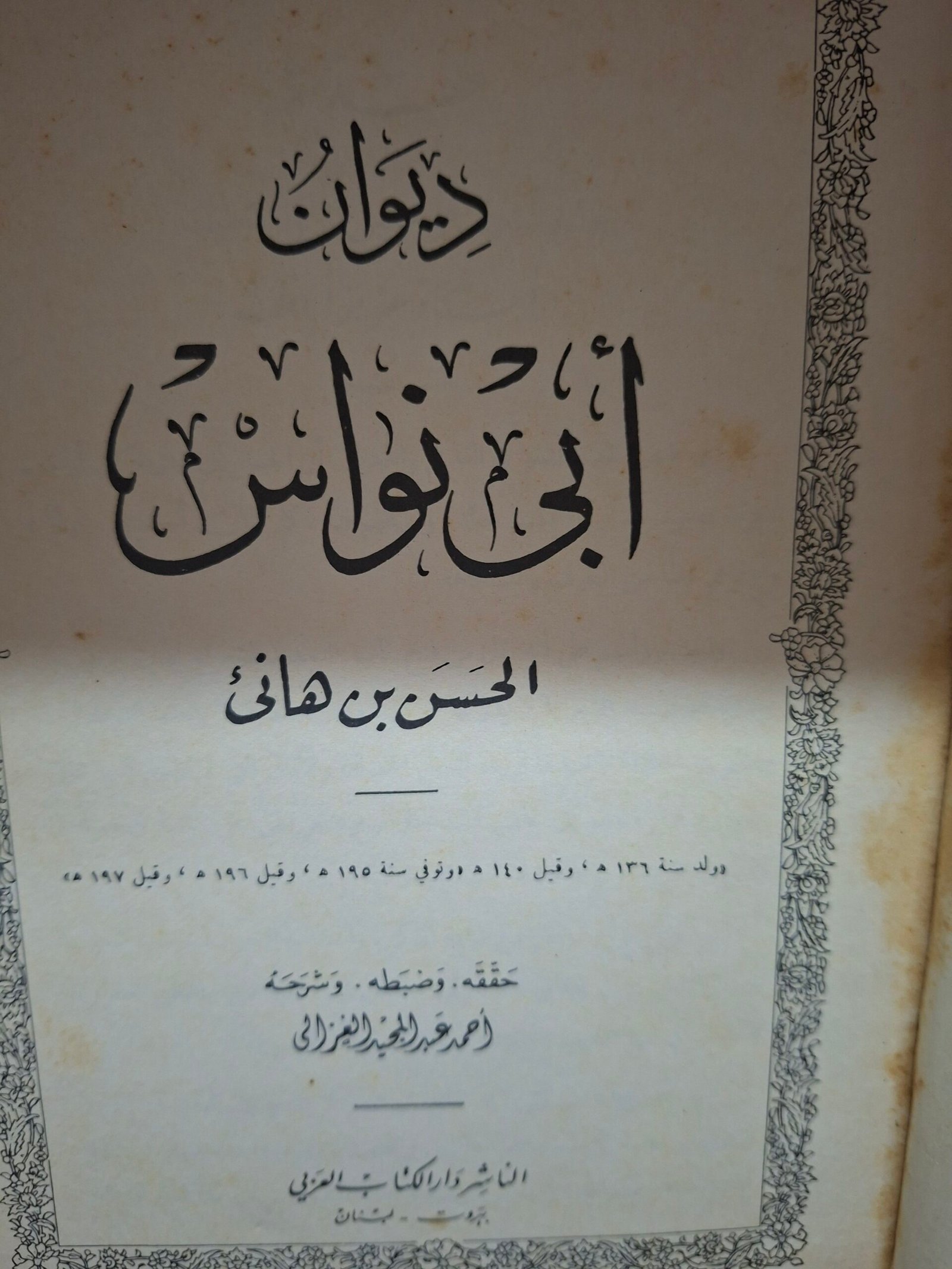 ديوان ابي نواس تاليف:الحسن بن هاني تحقيق:احمد.عبد المجيد