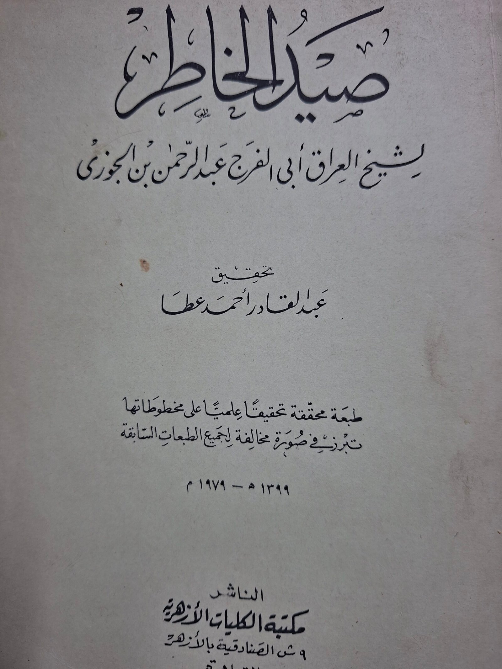 صيد الخاطر لشيخ العراق ابي الفرج عبدالرحمن بن الجوزي تحقيق#عبد القادر احمد عطا#
