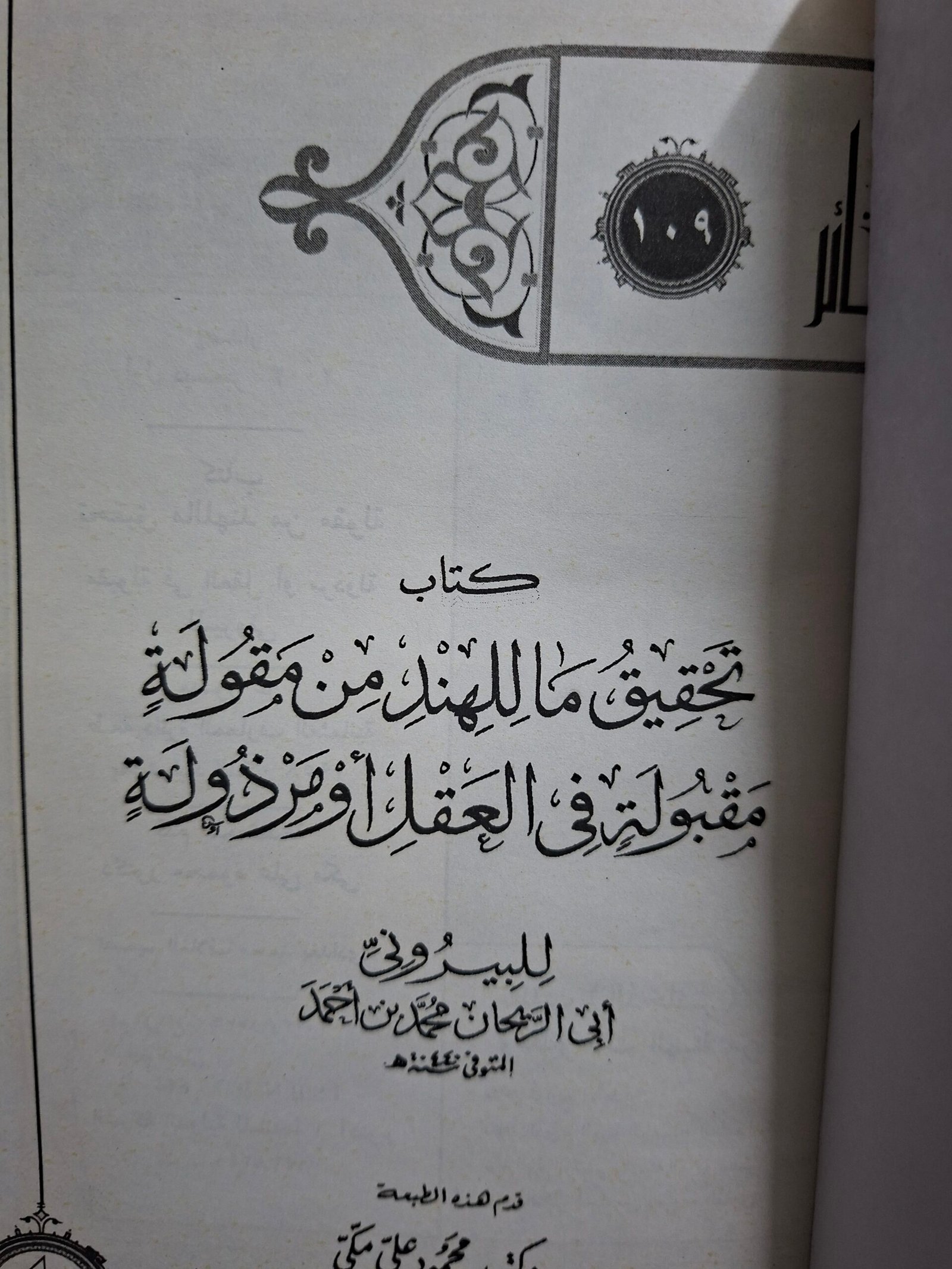 كمية كتاب تحقيق ماللهند من مقولة مقبولة في العقل او مرذولة__البيروني
