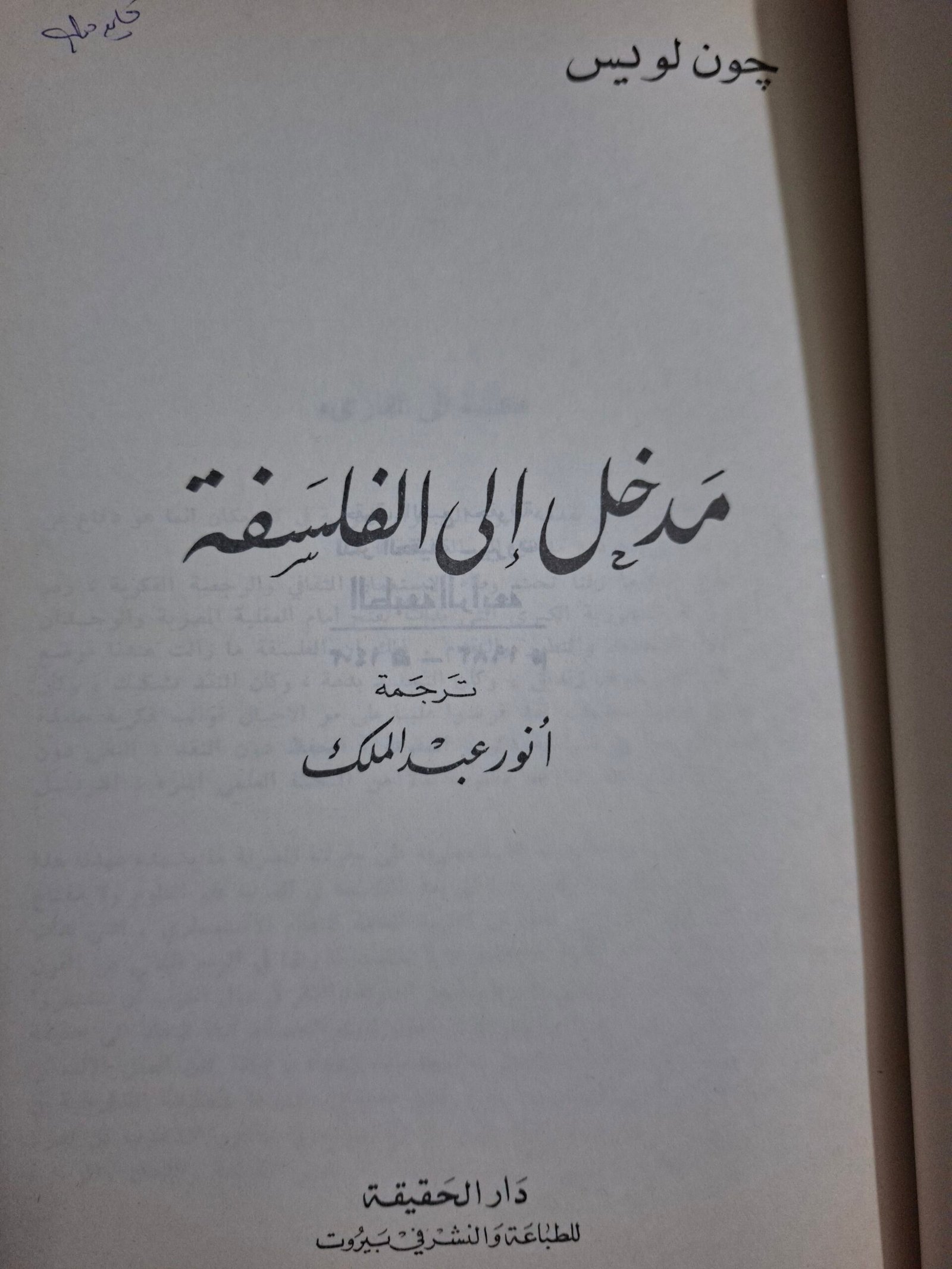 مدخل الي الفلسفة__جون لويس