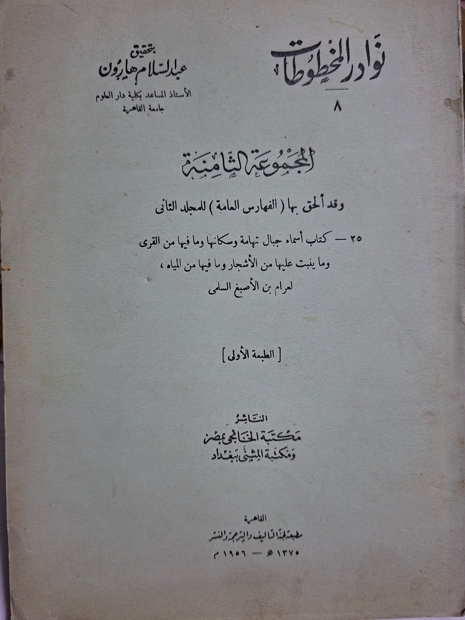 نوادر المخطوطات، المجموعة الثامنة_تحقيق عبدالسلام هارون